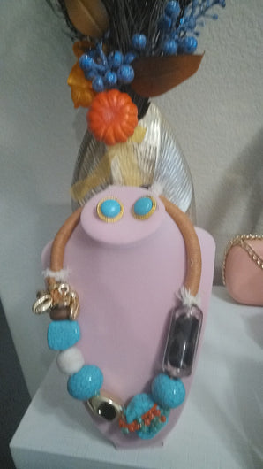Adorn yourself with this exotic handmade necklace set meticulously crafted in beautiful stones, beads and jewels.