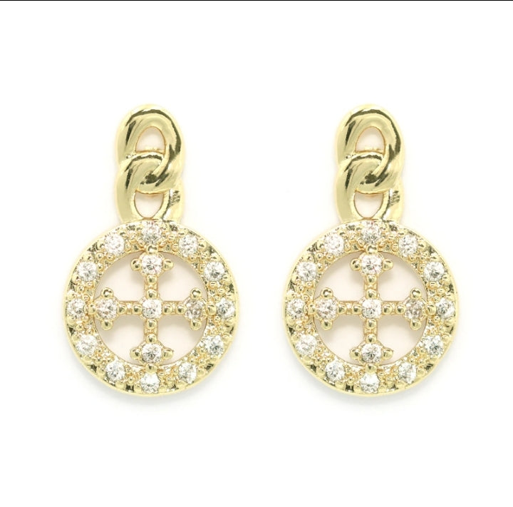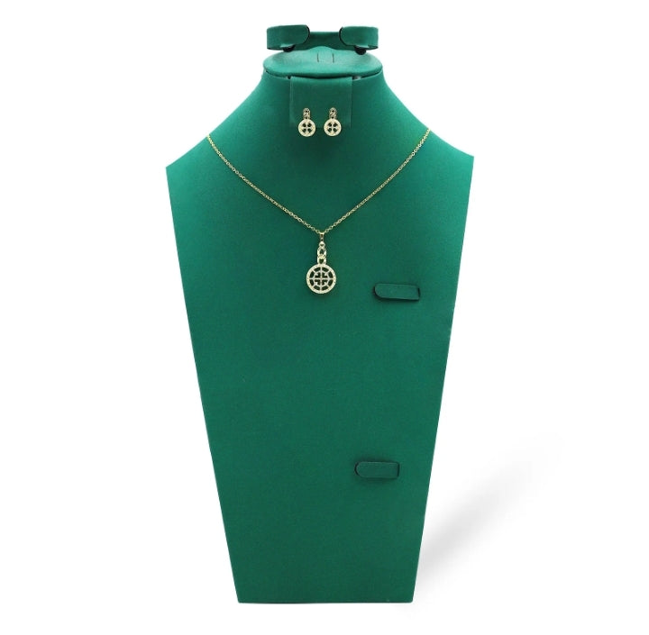 This crafted cross chain necklace set, featuring zircon stone accents and 18k gold plating for lasting brilliance. The geometric design is complemented by matching earrings adorned with sparkling rhinestones, creating a coordinated, perfect accessory for both everyday elegance and special occasions.