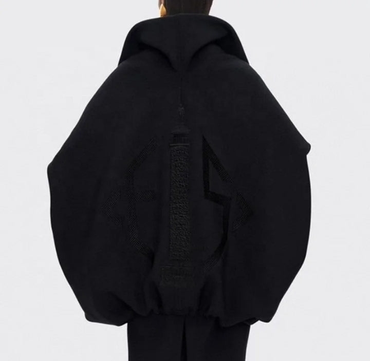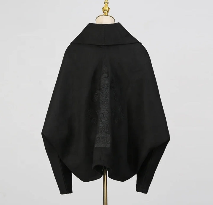 Elevate your fall wardrobe with this oversized casual jacket featuring a trendy, unique cross pendant on the zipper and unique engrave design on back. Designed for both style and comfort, it offers a relaxed fit ideal for layering during cooler months. The distinctive zipper detail adds a subtle yet striking accent, making this jacket an effortlessly chic choice for your seasonal outfits.